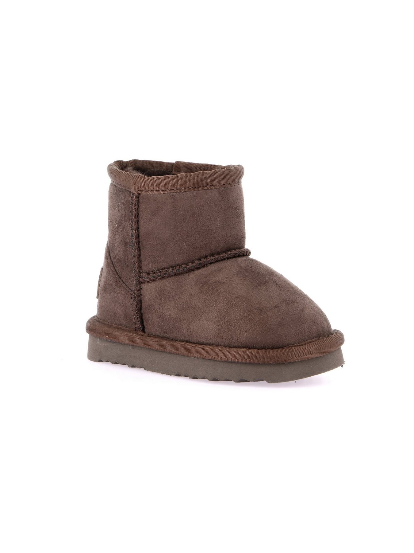 La fodera interna in soffice pelliccia sintetica mantiene il piede caldo e avvolto durante le giornate fredde, mentre la suola in gomma leggera e antiscivolo garantisce stabilità e sicurezza.