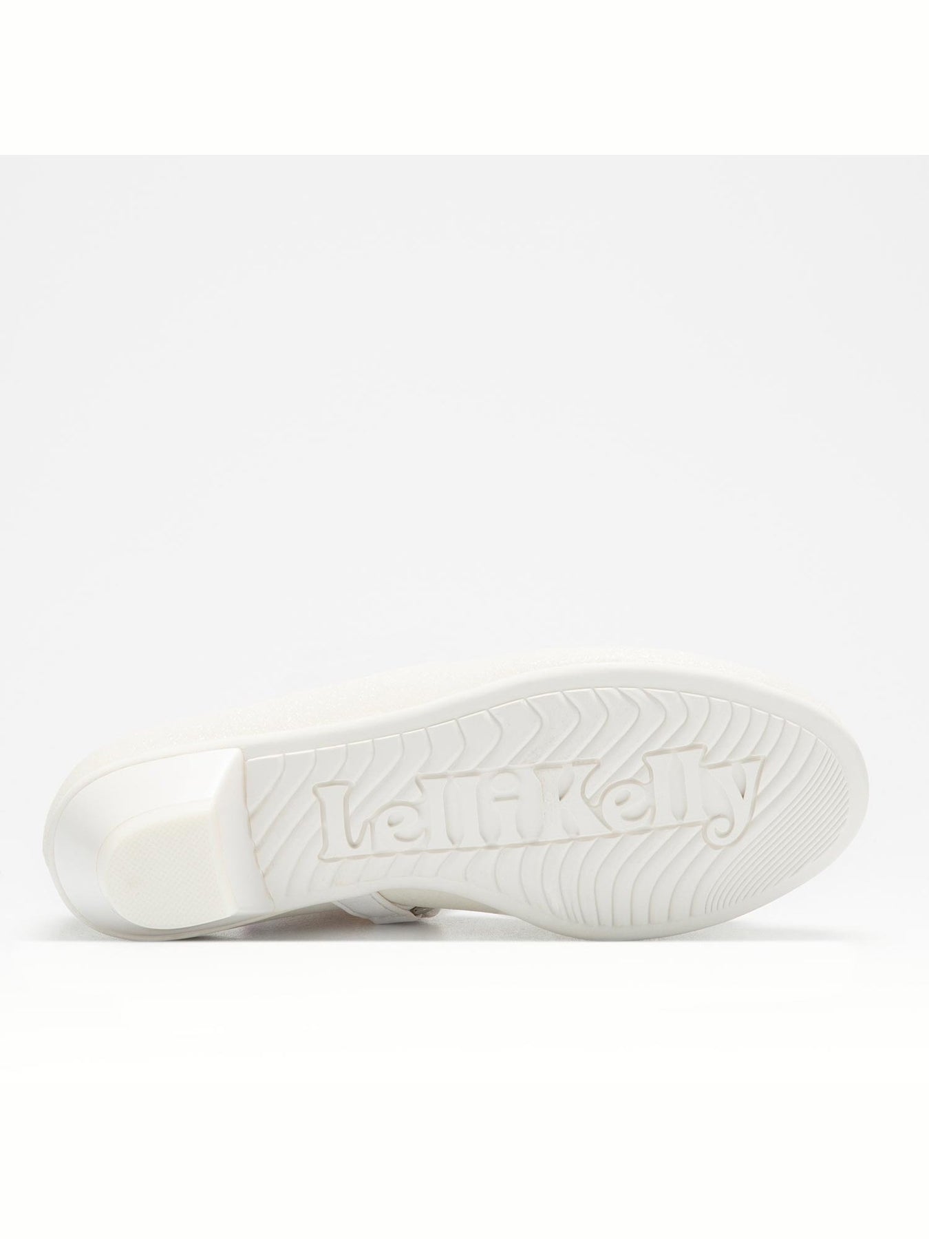 Realizzata con materiali di alta qualità, questa ballerina garantisce una calzata comoda e sicura grazie alla suola antiscivolo e al tacco basso che offre una buona stabilità. Il colore bianco è versatile e facile da abbinare a qualsiasi abito, per un look impeccabile in ogni occasione.