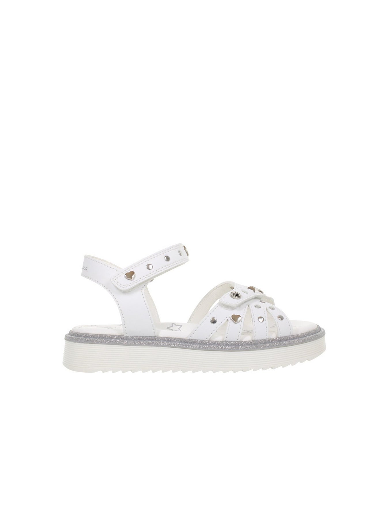 Tomaia Esterna: realizzata in materiale sintetico effetto pelle nella tonalità bianco con inserti decorativi, progettata per offrire resistenza, leggerezza e uno stile estivo moderno
