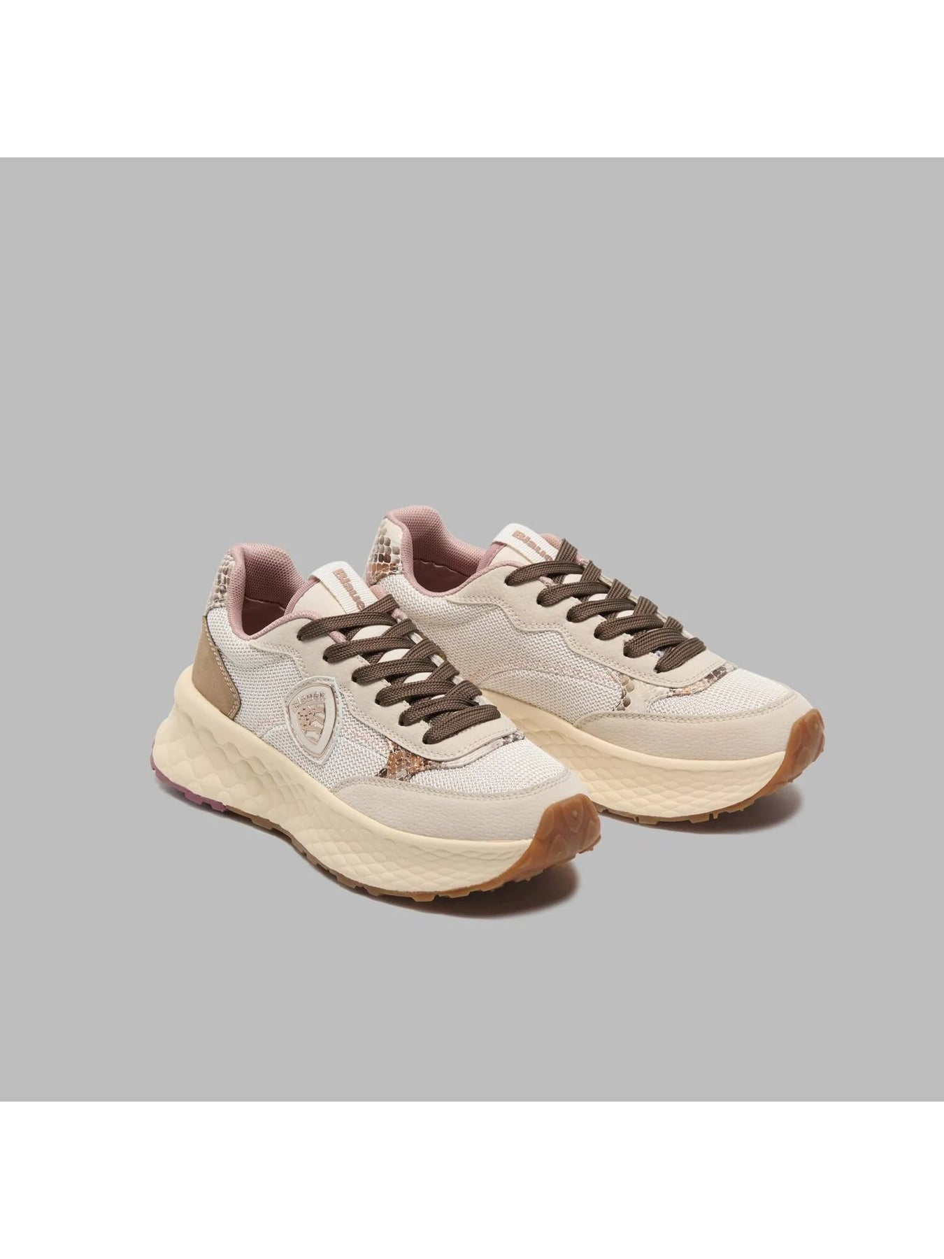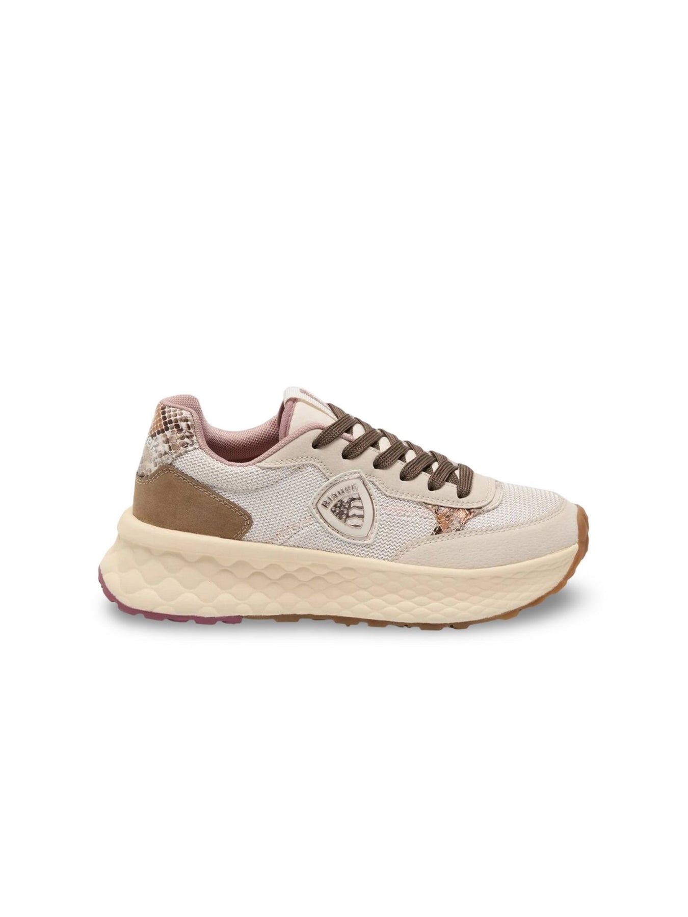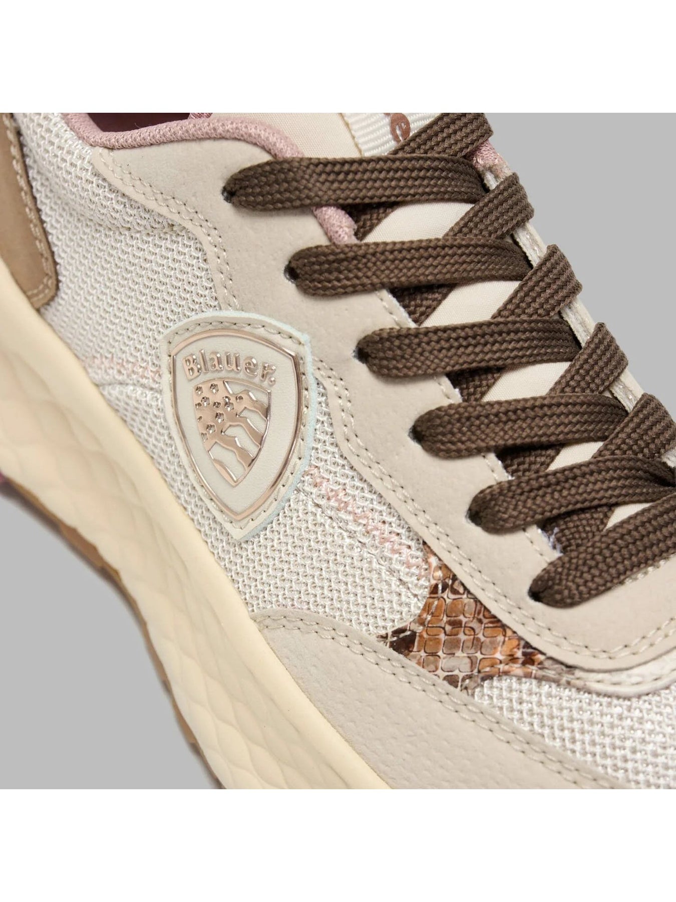 Il modello BLAUER F5LYNN01 Cream/Brown è una sneaker bassa femminile dal carattere trendy e contemporaneo, pensata per chi desidera unire comfort e stile. Realizzata con una combinazione di tessuto tecnico e inserti in pelle color crema e marrone, è arricchita da dettagli in fantasia che donano un tocco ricercato.