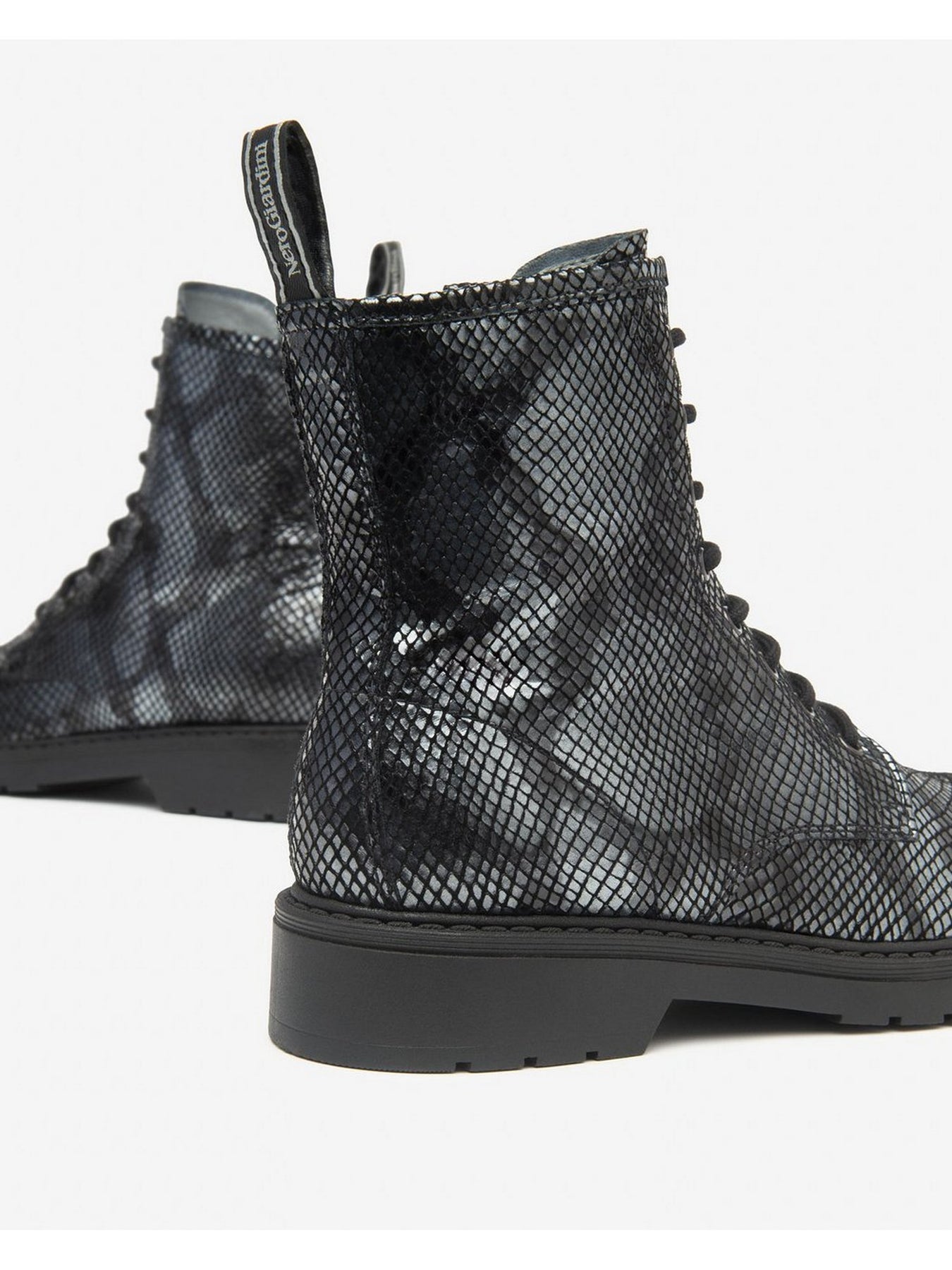 NERO GIARDINI I513946D Nikel sono anfibi da donna dal carattere deciso, realizzati in pelle di alta qualità Made in Italy. La finitura metallizzata nikel dona un tocco moderno e sofisticato, perfetto per distinguersi con stile.