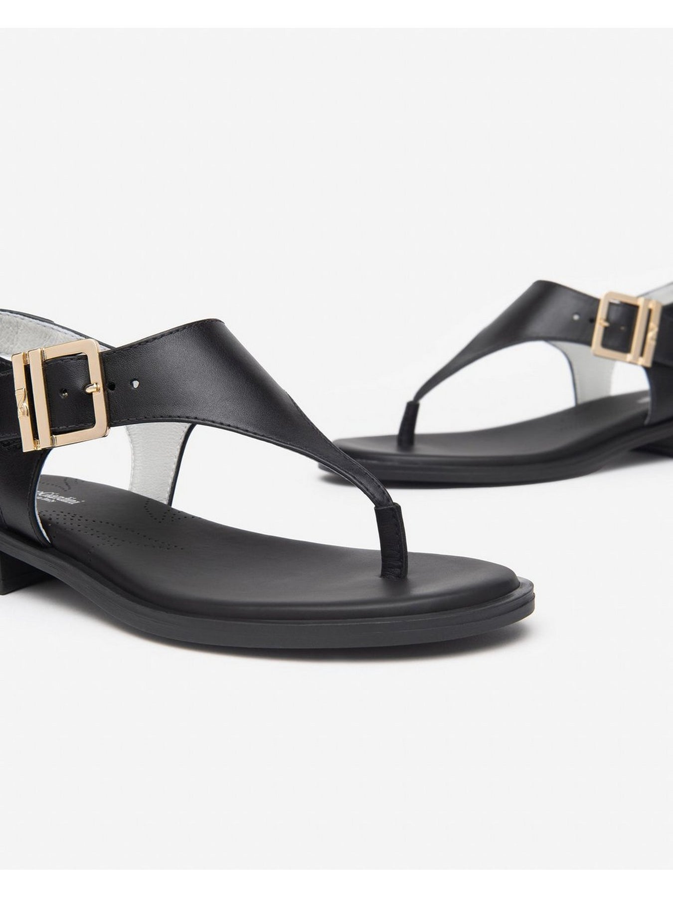 Il sandalo infradito NERO GIARDINI E513405D in colorazione nera è un modello elegante e raffinato, perfetto per chi cerca un look sofisticato con un tocco di modernità. La tomaia in pelle e la fibbia dorata aggiungono un accento di lusso, mentre il tacco a blocco di 2,5 cm offre stabilità e comfort per tutto il giorno. Il design minimalista rende questo sandalo versatile per diverse occasioni, sia casual che più eleganti.