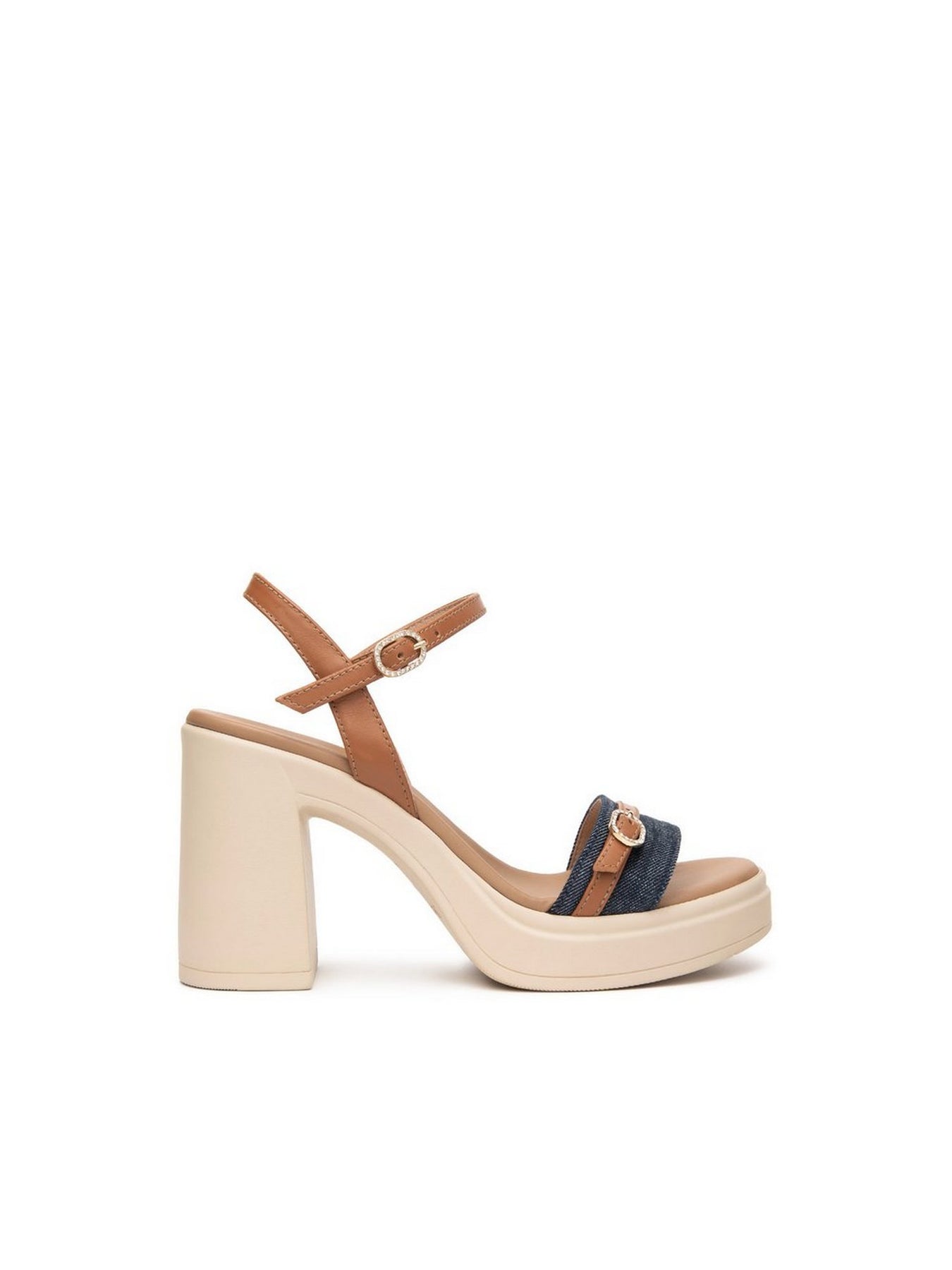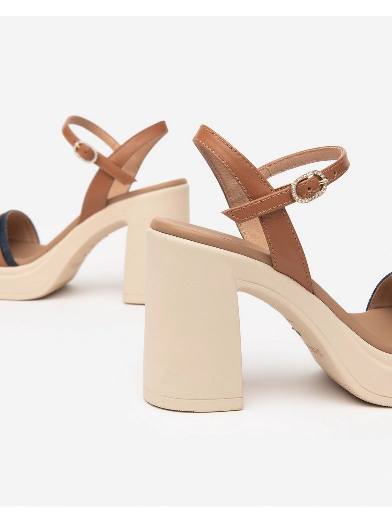 Il tacco largo abbinato al plateau assicura stabilità e comfort prolungato, mentre il cinturino alla caviglia con fibbia regolabile offre una calzata sicura e personalizzabile. Un modello Made in Italy realizzato con cura artigianale e materiali di alta qualità.