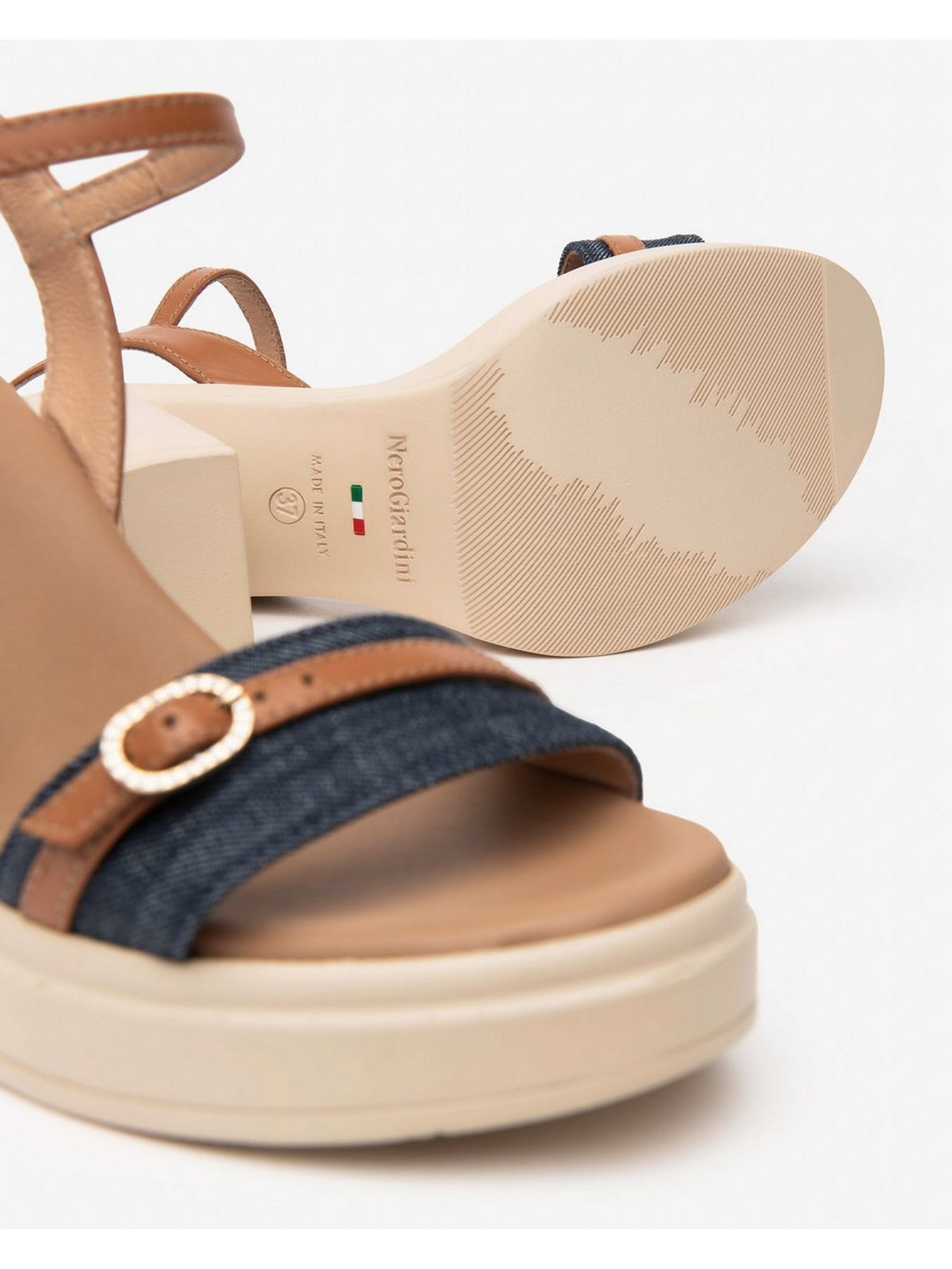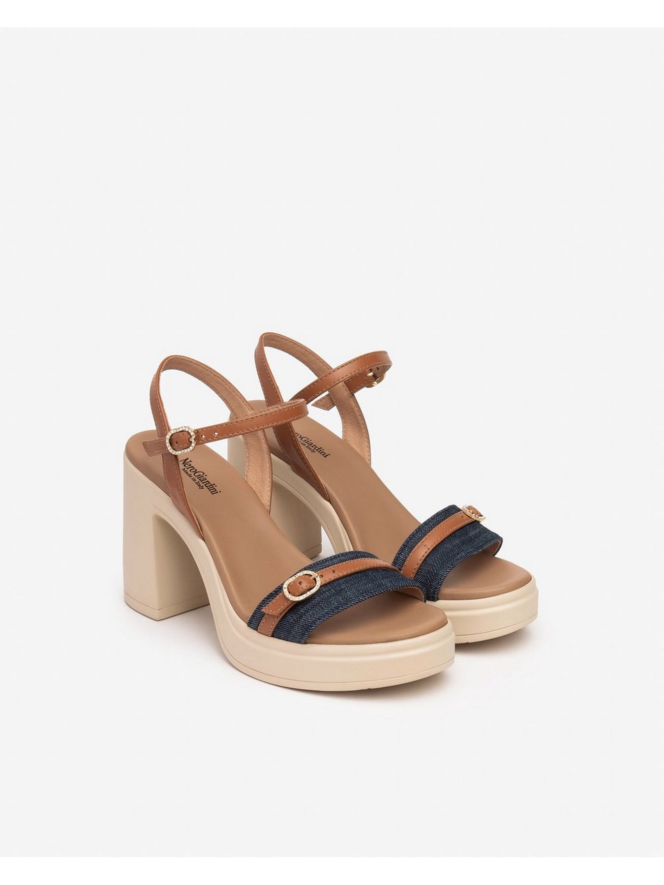 Il sandalo con tacco alto NERO GIARDINI E513665D nella tonalità Blu/Jeans è la scelta ideale per chi cerca un design raffinato e casual, perfetto per la stagione estiva. Le fasce in denim abbinate ai cinturini in pelle color cuoio con dettagli a fibbia regalano un look moderno e fresco, adatto sia per il giorno che per la sera.