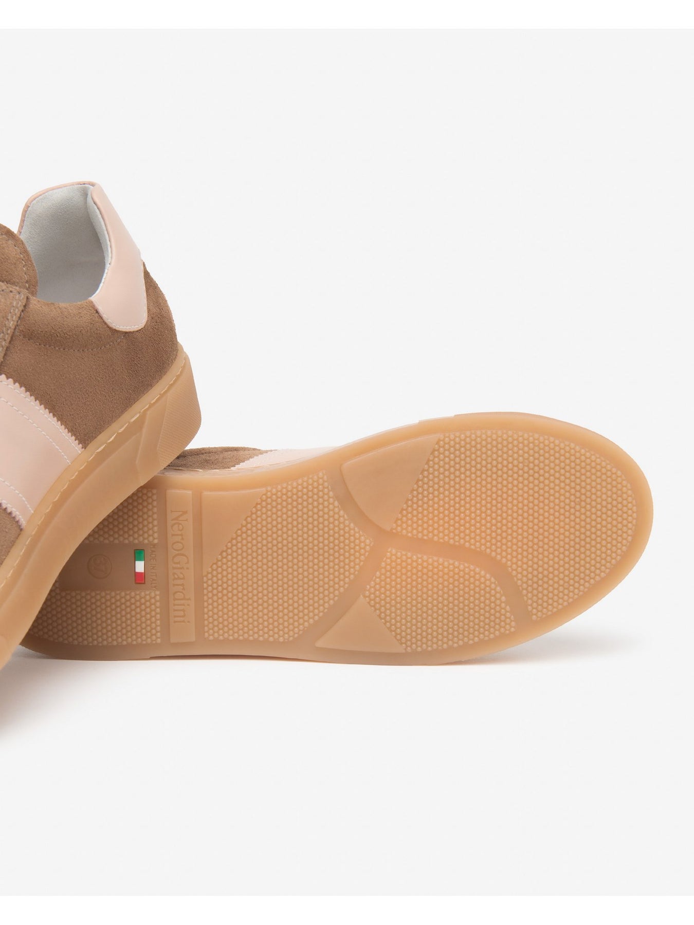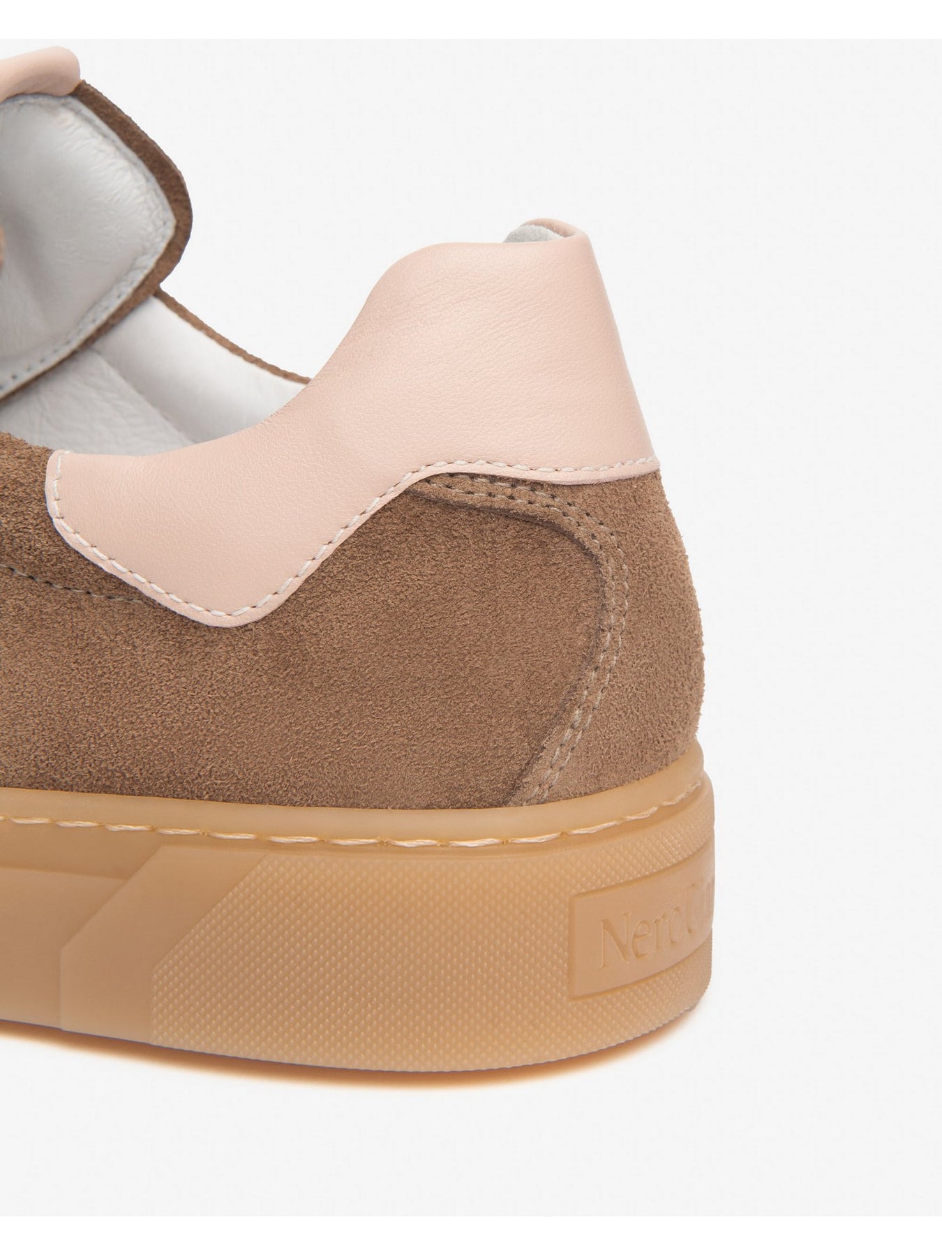 Tomaia Esterna: 100% pelle scamosciata con inserto laterale a contrasto per un effetto dinamico e raffinato