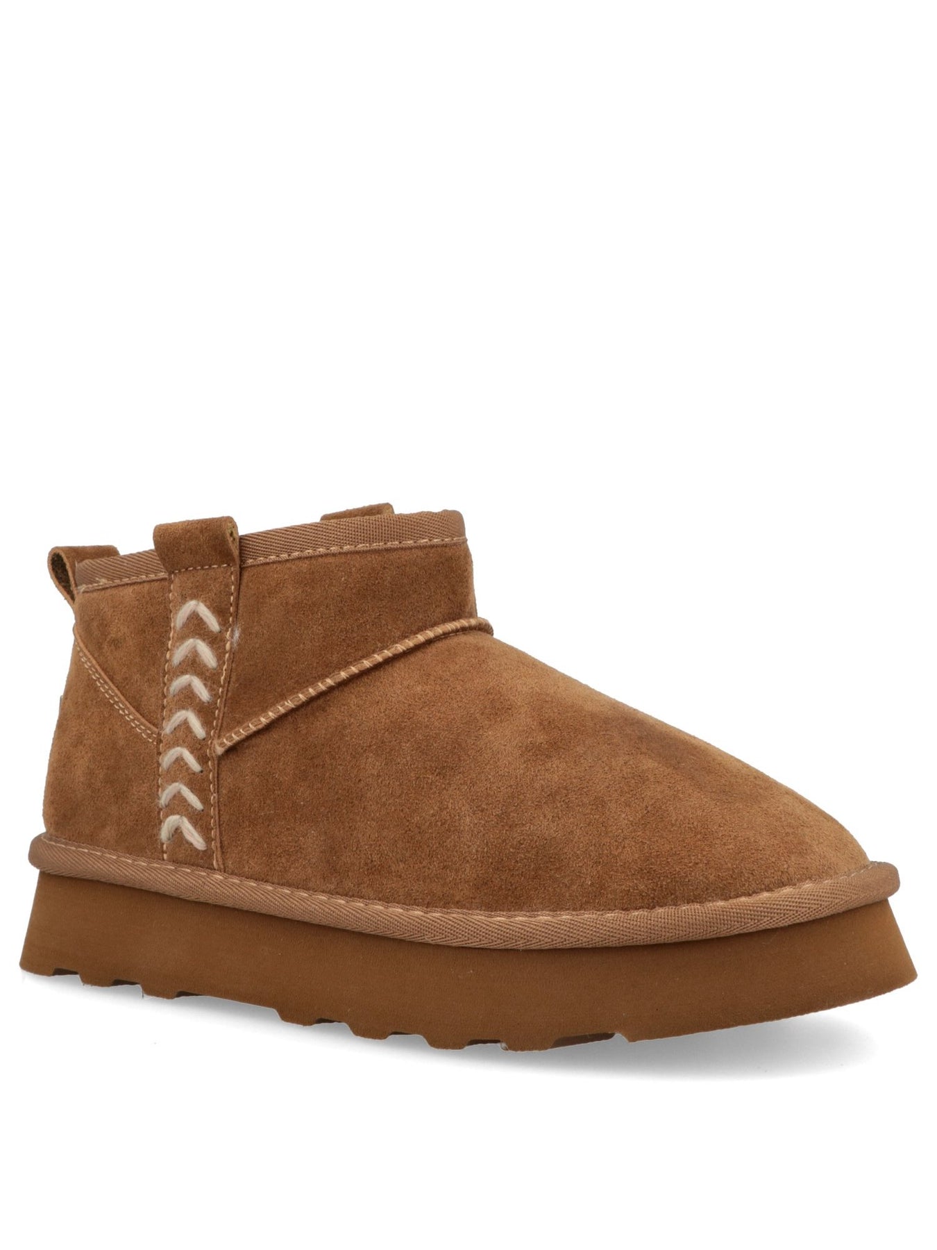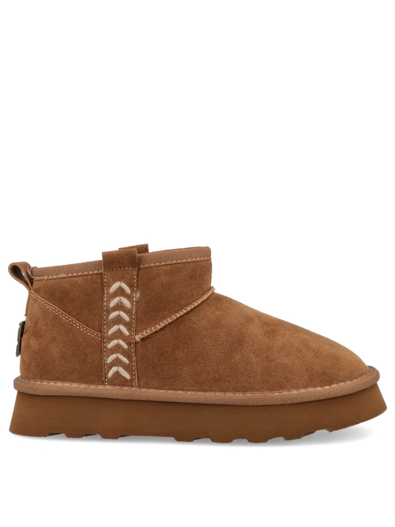 Realizzato in pelle scamosciata di alta qualità, avvolge il piede con morbidezza e calore. Le cuciture decorative a contrasto donano un carattere distintivo, mentre il design con linguetta posteriore facilita la calzata.