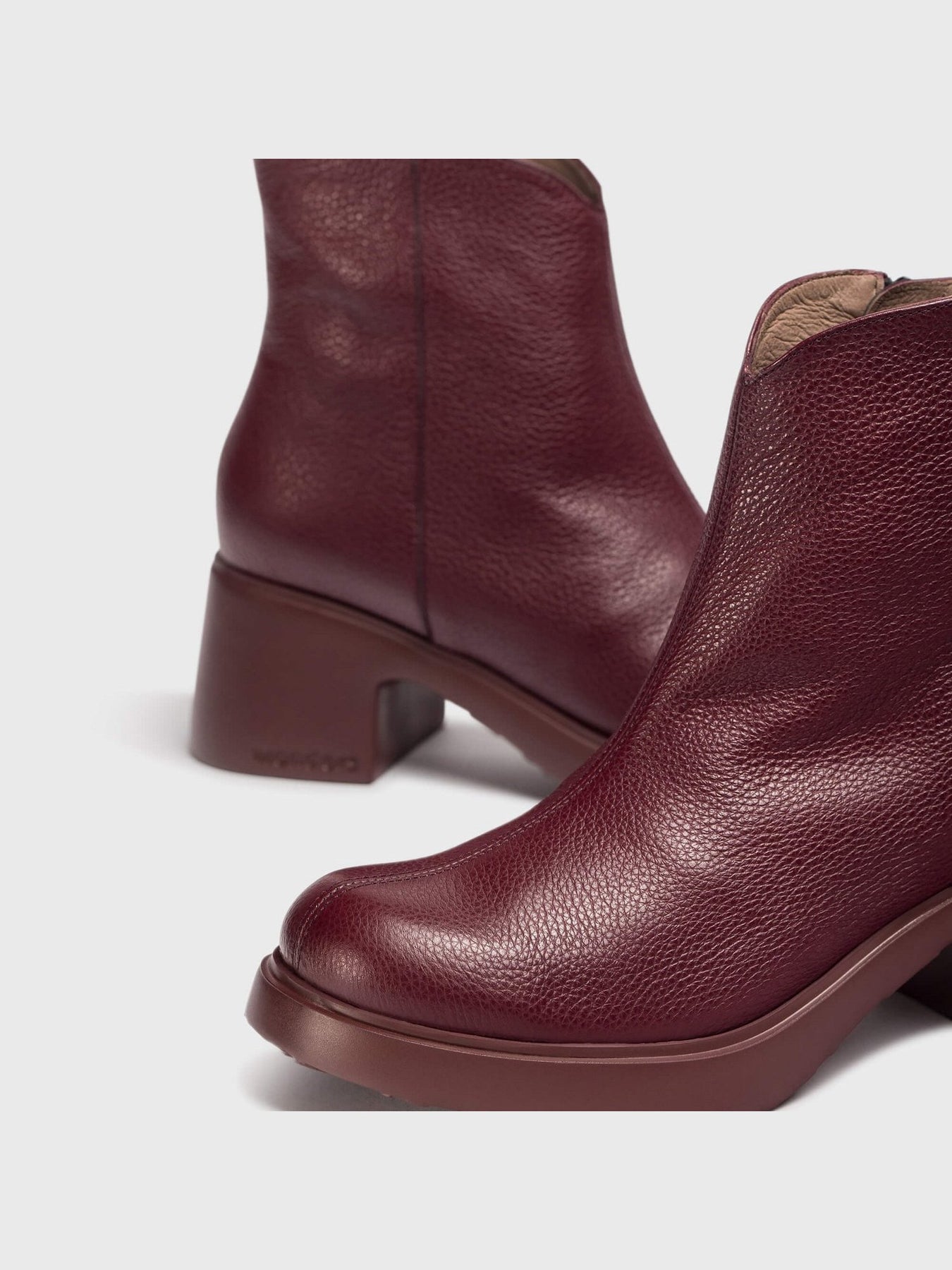 Realizzato in morbida pelle bordeaux con grana naturale, si distingue per il colore intenso e di tendenza che dona carattere a ogni outfit. Il tacco medio largo da 6 cm assicura altezza e stabilità, mentre la suola leggera garantisce praticità e comodità nell'uso quotidiano.