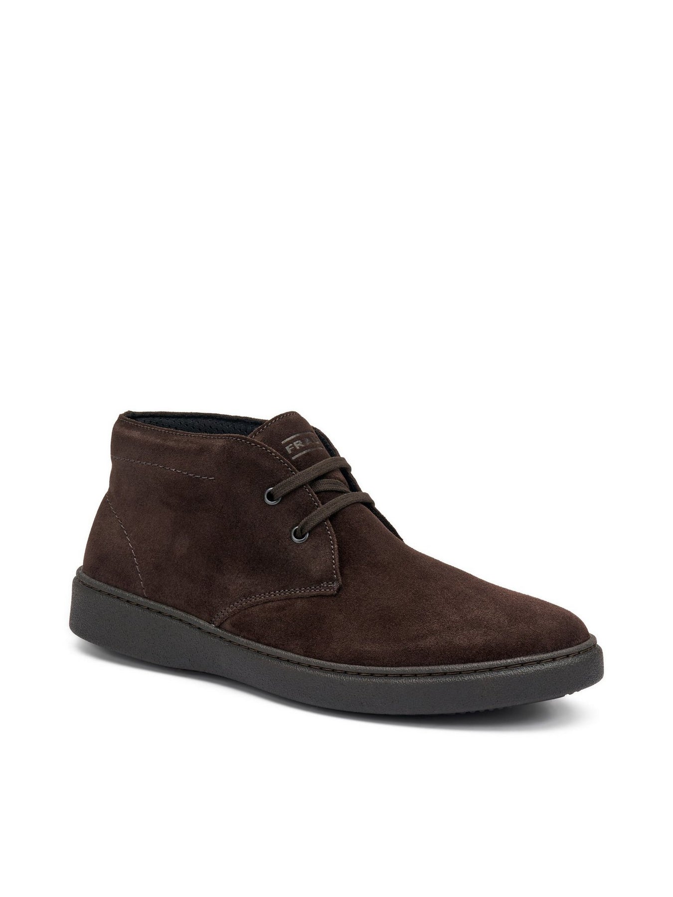 La polacchina FRAU 19A5 Marrone è realizzata in morbido camoscio, con finiture sobrie e lacci abbinati per uno stile elegante e versatile.