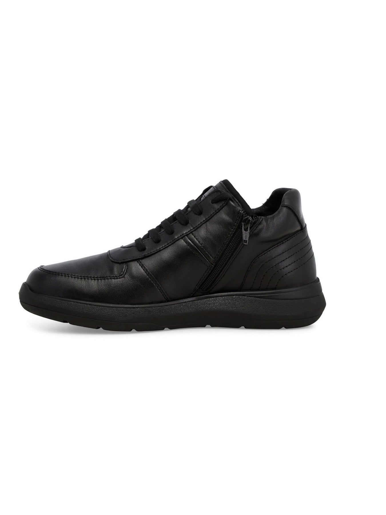 Realizzata in pelle liscia nera di alta qualità, presenta un design sobrio con chiusura a lacci che garantisce una calzata sicura e regolabile.
