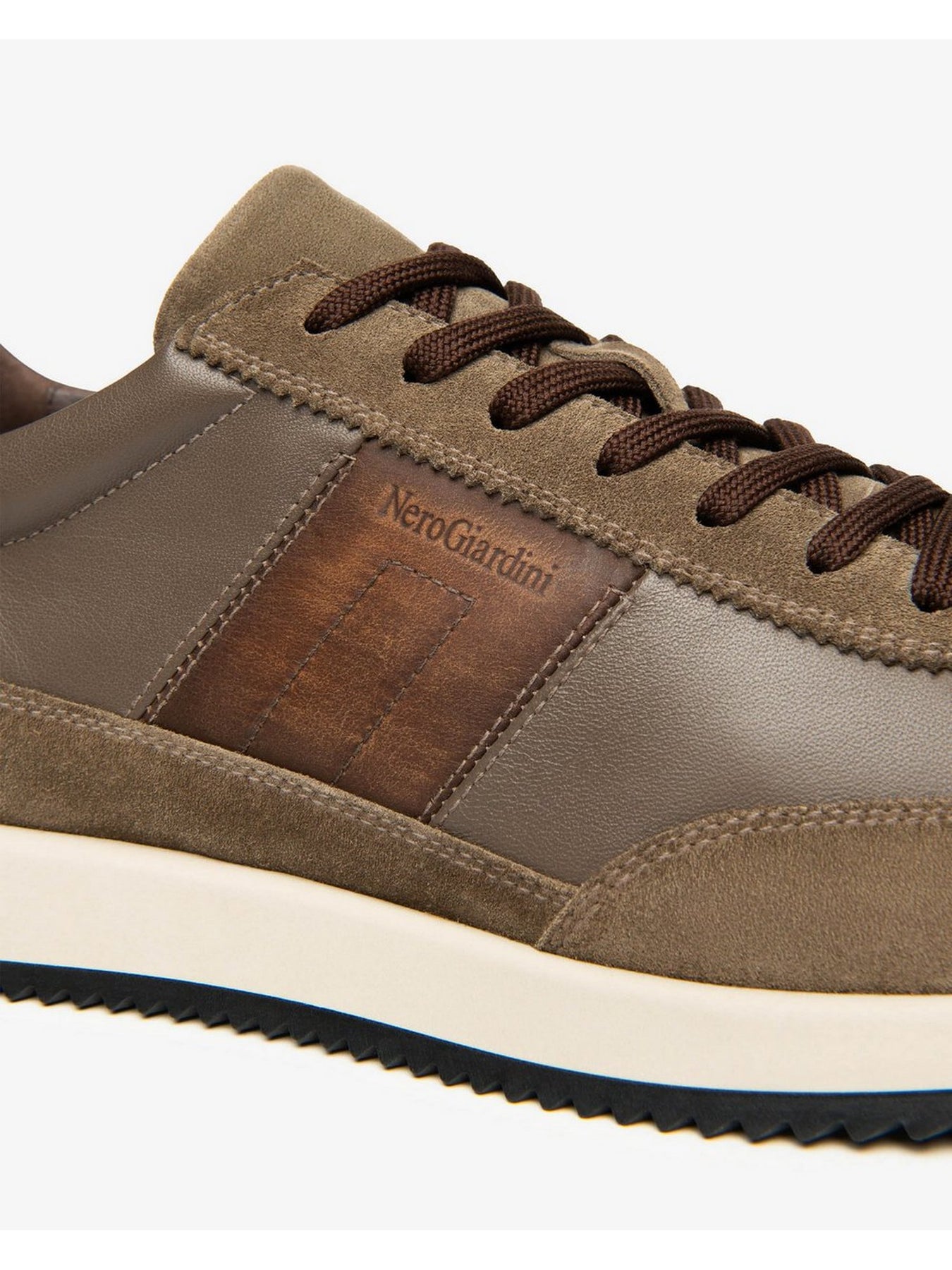 La Nero Giardini I500901U Fango è una sneaker dal design casual e contemporaneo, realizzata in pelle e tessuto tecnico per garantire resistenza, comfort e traspirabilità.